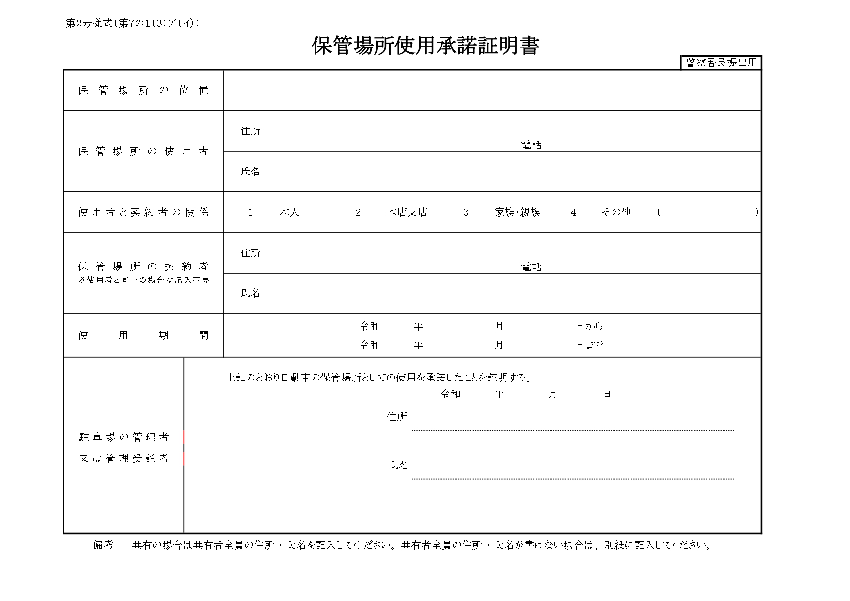 2025年4月1日より、保管場所標章(ステッカー)の廃止に伴い、千葉県では「申請書2枚(第1号様式)と申請書控え1枚」の提出となります。なお、添付書類は従来通り変更ありません。